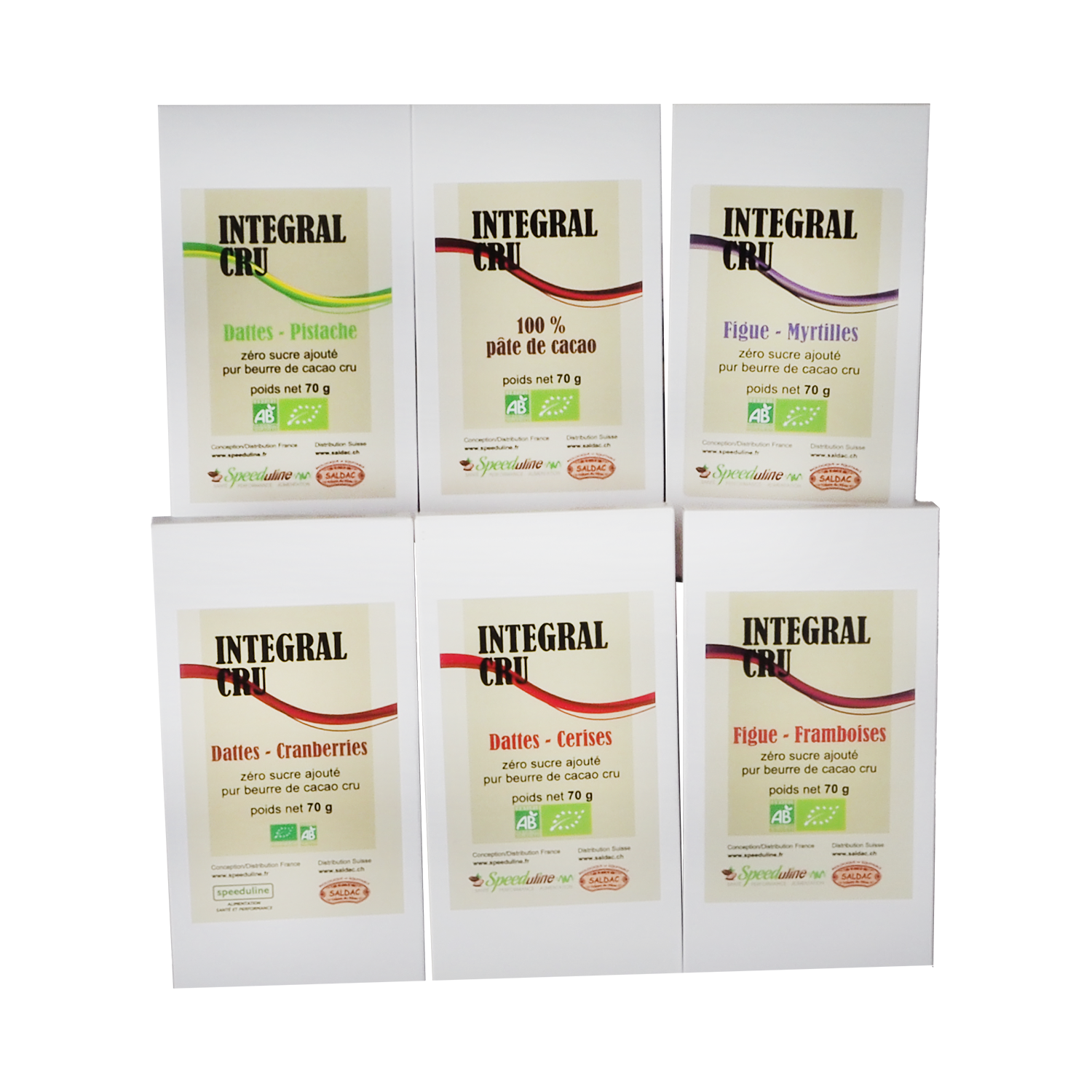 Le chocolat Cru est fabriqué à moins de 45 °C, il conserve donc encore mieux ses vitamines et minéraux. Cacao de pure origine Criollo, très parfumé, se rapproche du goût de la fève avec des notes florales, d’agrumes et de cerises.