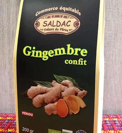 Gingembre en tranche, confit, biologique. Idéal pour la pâtisserie, à enrober de chocolat ou à couper en morceaux dans des gâteaux ou encore pour cuisiner des plats salés. Très parfumé, piquant à souhait.