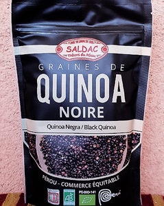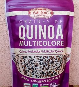 Préparation: mettre dans de l’eau froide, porter à ébullition et laisser cuire environ 10 à 12 minutes. Très bon contraste entre le moelleux de la quinoa rouge, le croquant de la quinoa noire et la consistance de la quinoa blanche.