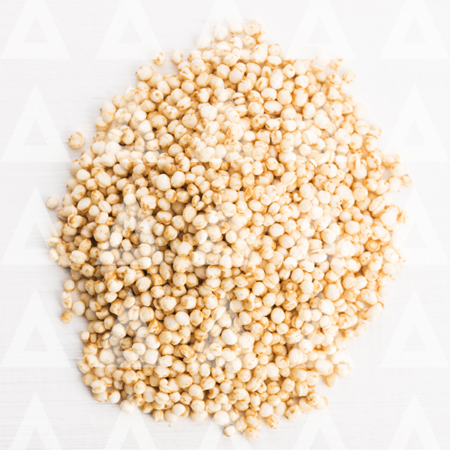 Quinoa soufflée bio. Idéal pour le petit déjeuner, à mettre dans les céréales ou les boissons cacaotées, les yaourts, les salades de fruits, dans les mousses au chocolat, ou mousses de fruits, en décoration sur les pâtisseries.