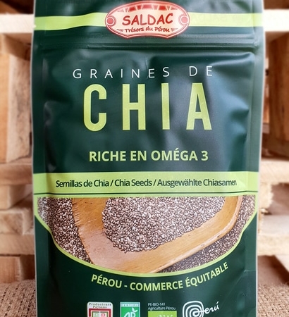 Graines de chia bio. Produite par la coopérative Los Chankas dans le sud du Pérou (Apurimac).