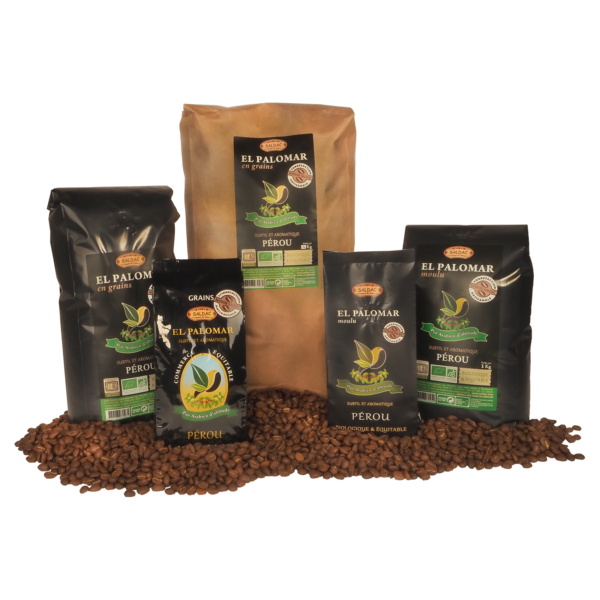| Content | Un nouveau café de nos partenaires de la coopérative Pangoa, qui nous fournit également les fèves de cacao Criollo depuis 2005. Ce café éco responsable est issu des Terres indigènes Nomatsiguëngas, à 1 700 m d’altitude environ, dans le secteur de Mazaronquiari. Il pousse en forêt primaire, sous couvert végétal diversifié et bénéficie ainsi de la certification “Amigable del bosque (Birds Friendly)”. Puissant, crémeux et gourmand, avec des notes boisées, de fruits secs et de cerises noires, il convient parfaitement aux amateurs d’expresso, idéal pour la restauration. Biologique, certifié Ecocert. La nouveauté 2021 : Torréfaction artisanale dans notre atelier à Montélimar, emballages sans aluminium. Notre gamme de café est certifiée commerce équitable par le système SPP “Simbolo de los Pequenos Productores”, un label qui appartient enfin aux producteurs : www.spp.coop | Le café El Palomar, provient d’un terroir d’altitude, où la richesse des sols et les méthodes artisanales de production et d’élaboration du café, donnent aux grains une saveur très agréable, digne d’un grand cru. Pur Arabica d’altitude, subtil et aromatique, long en bouche Torréfaction artisanale dans notre atelier, emballage sans aluminium. Notre gamme de café est certifiée commerce équitable par le système SPP “Simbolo de los Pequenos Productores”, un label qui appartient enfin aux producteurs : www.spp.coop | Ces Chocolats intégralement biologiques, bénéficient du label équitable SPP pour toutes les parties de cacao. Tous les chocolats de la gamme Intégale ont en commun : o Fabriqués artisanalement par PJ Natura et moulés à la louche. o les « sucres » sont en fait des fruits lyophilisés (dattes ou figues), donc non cuits. N’étant pas cuits, ils sollicitent moins la production d’insuline et permettent aux diabétiques d’en consommer. Bien évidemment sans abus et dans le cadre de leur régime habituel. o Tous les fruits sont séchés à basse température et aucun n’a de sucre ajouté. Seulement leur sucre naturel, plus, pour certains, du jus de pomme biologique. o Pas de lécithine, ni de soja, ni de tournesol. Aucun allergène. o Tablettes de 70 g | Le chocolat Cru est fabriqué à moins de 45 °C, il conserve donc encore mieux ses vitamines et minéraux (magnésium, fer). Pure origine Criollo, très parfumé, se rapproche du goût de la fève, notes florales, d’agrumes et de cerises. Très intense en saveurs. Notre gamme de chocolats est certifiée commerce équitable par le système SPP “Simbolo de los Pequenos Productores”, un label qui appartient enfin aux producteurs : www.spp.coop | Le café “Sud du Cauca” de Colombie (vallée du Cauca) possède des arômes puissants de chocolat et de fruits rouges, crémeux, onctueux et long en bouche, issu d’un petit terroir d’altitude entre 1 400 et 1 700 m, également du commerce équitable. Produit par la coopérative Cosurca, terroir de Popayan, au sud de la Colombie. Café lavé. La Nouveauté 2021 : Torréfaction artisanale dans notre atelier à Montélimar, emballage sans aluminium. Il est présenté en sachet de 250 g avec valve pour maintenir toute sa fraîcheur, pour les particuliers, cafés, hôtels, restaurants et collectivités. Biologique, certifié Ecocert. Notre gamme de café est certifiée commerce équitable par le système SPP “Simbolo de los Pequenos Productores”, un label qui appartient enfin aux producteurs : www.spp.coop | |||||||||||||