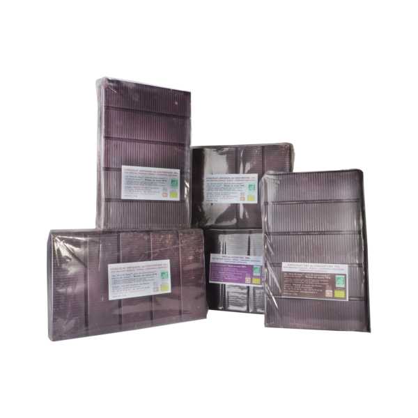 | Description | Puissant, crémeux et gourmand, avec des notes boisées, de fruits secs et de cerises noires, il convient parfaitement aux amateurs d’expresso, idéal pour la restauration. Torréfaction artisanale dans notre atelier, emballage sans aluminium. cartons de 9 pc. | Pur Arabica d’altitude, subtil et aromatique, long en bouche Torréfaction artisanale dans notre atelier, emballage sans aluminium. | Fabriqués artisanalement par PJ Natura et moulés à la louche. | Le chocolat Cru est fabriqué à moins de 45 °C, il conserve donc encore mieux ses vitamines et minéraux. Cacao de pure origine Criollo, très parfumé, se rapproche du goût de la fève avec des notes florales, d’agrumes et de cerises. | Le café “Sud du Cauca” de Colombie (vallée du Cauca) possède des arômes puissants de chocolat et de fruits rouges, crémeux, onctueux et long en bouche, issu d’un petit terroir d’altitude entre 1 400 et 1 700 m, également du commerce équitable. Torréfaction artisanale dans notre atelier, emballage sans aluminium. cartons de 18 pc. | |||||||||||||