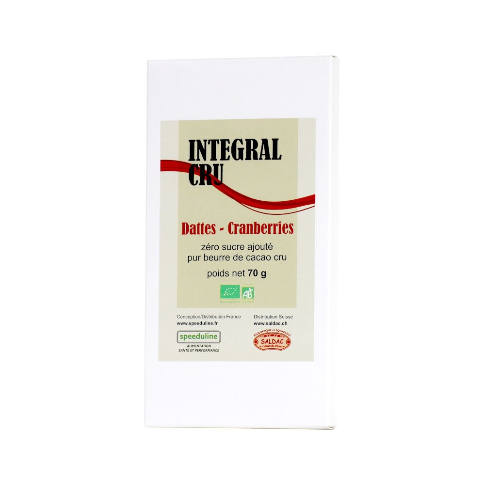Chocolat Intégrale Cru, datte-cranberries, bio, PJ, 70gr