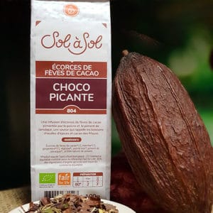 | Settings | Infusion "choco picante", bio, 100gr remove | Chocolats noirs, El Inti, fabrication artisanale, tablettes 100gr remove | Éclats de fèves de cacao (Nibs), bio, équitable, 250gr remove | Confiseries au chocolat, VRAC remove | Fèves de cacao séchées, bio, équitable, 250gr remove | Beurre, Fèves, Nibs et Cacao en Vrac remove | ||||||||