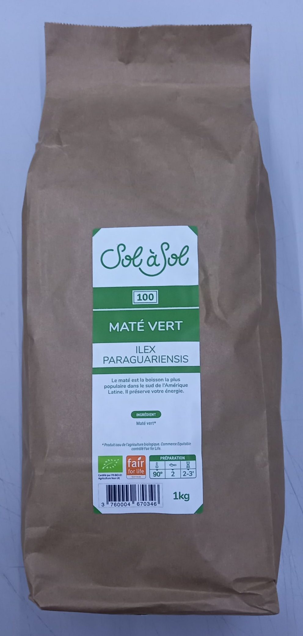 | Content | Sachet de 1kg Ingrédients : maté. Certifié Commerce équitable par Fair For Life (FFL). | Infusion désaltérante et énergisante, c’est une boisson traditionnelle dans le sud de l’Amérique latine. Goût d’un thé vert très infusé avec une pointe d’amertume. A consommer à toute heure de la journée Certifié Commerce équitable par Fair For Life (FFL). | Le sucre de canne complet « Panela » est un sucre de canne bio et brut, non raffiné. Il est obtenu par la cristallisation du jus de la canne à sucre, ce qui lui permet de conserver l’essentiel de ses nutriments. Riche en vitamines et minéraux, le sucre de canne complet offre le goût caractéristique de la canne à sucre. Vous pouvez alors parfumer vos plats de cet arôme caramel/réglisse si gourmand Notre sucre de canne complet provient essentiellement de deux villages de la province de Ayabaca : Sicchez et Montero. C’est après la saison des pluies et au nord du Pérou que sont cultivées et récoltées les cannes à sucre utilisées dans la confection du sucre de canne complet « Panela ». Notre sucre de canne est certifié commerce équitable par le système SPP “Simbolo de los Pequenos Productores”, un label qui appartient enfin aux producteurs : www.spp.coop | |||||||||||