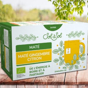 Ingrédients : maté, gingembre, citronnelle, huile essentielle de citron.